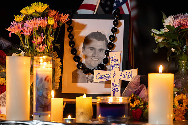 The suspected shooter, Tyler Robinson, 22, allegedly fired from a rooftop 200 yards away as Charlie delivered his speech; Robinson is now in custody facing aggravated murder charges.